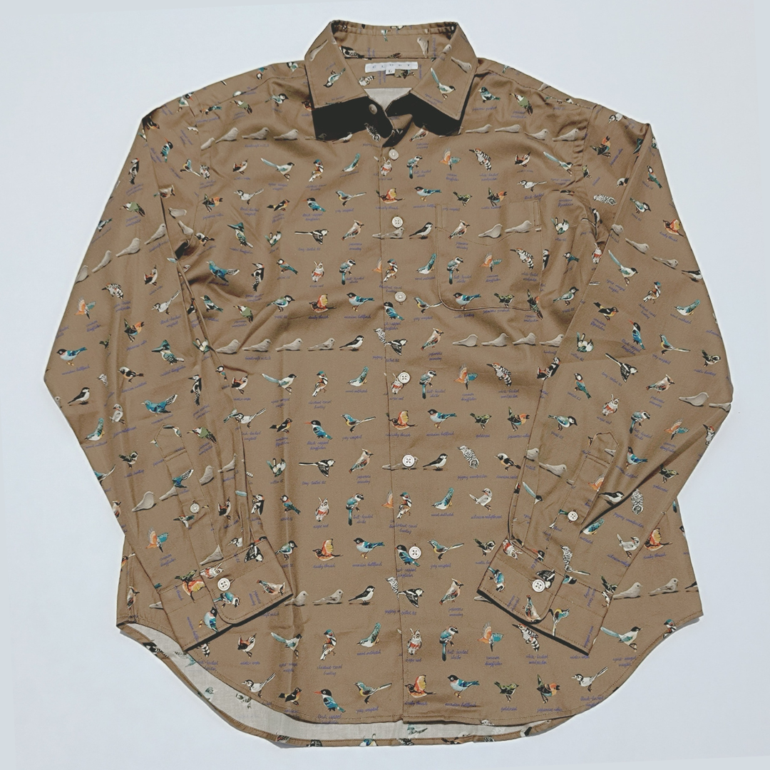 このシャツのテーマは”バードカービング(野鳥彫刻)”です。