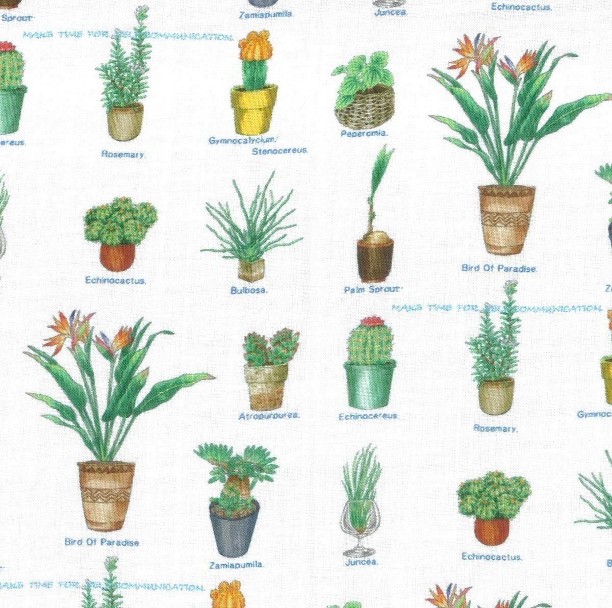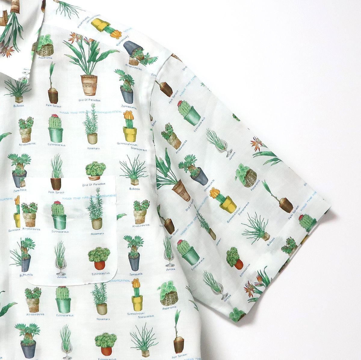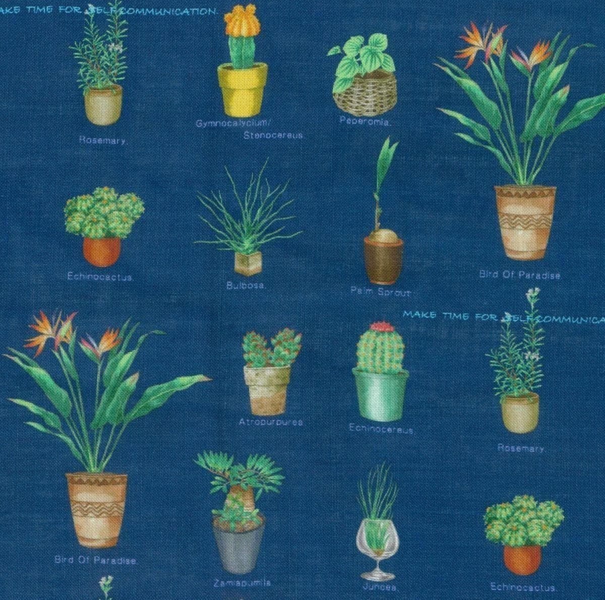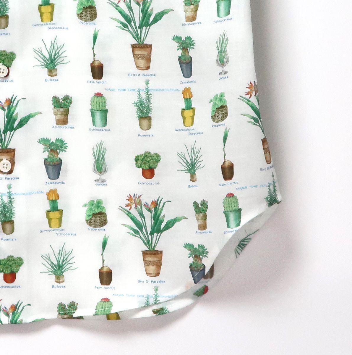 多彩な観葉植物が描かれた落ち着きのある柄と、