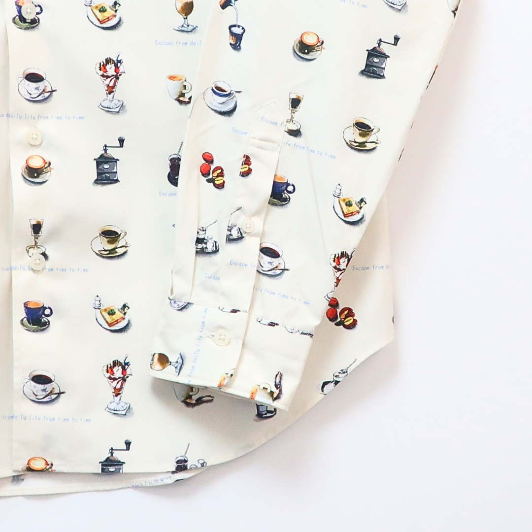 このシャツに描かれたクリームソーダやプリン・ア・ラ・モードは、そんな安らぎの時間を象徴するアイコン。